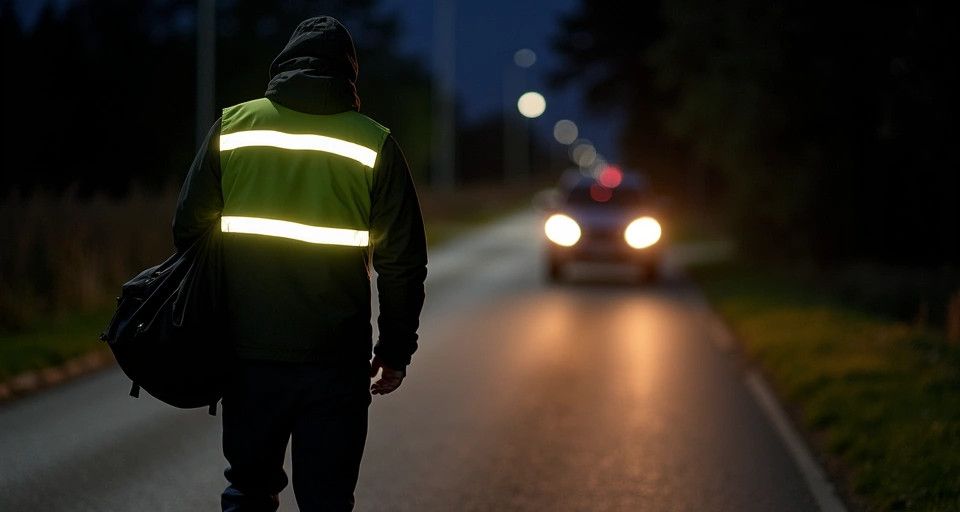 - Noś odblaski na wierzchniej odzieży tak, aby znajdowały się w polu świateł pojazdów.