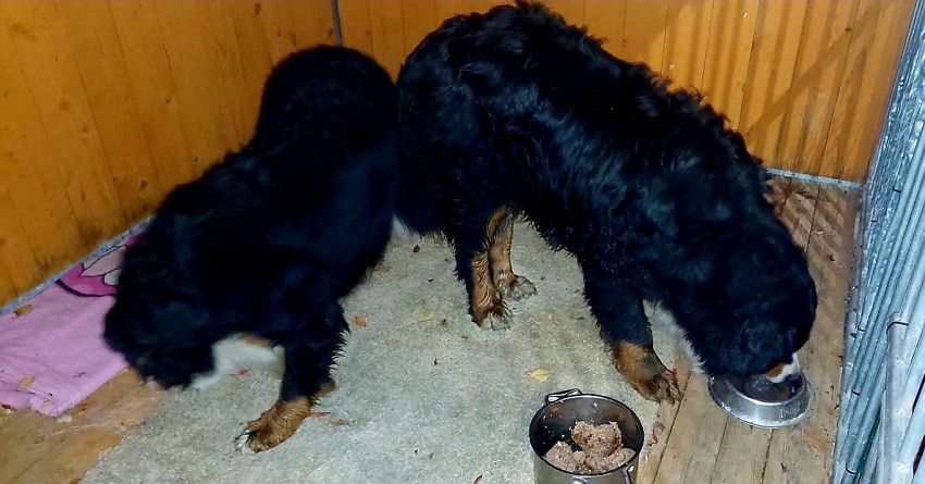 Policjanci z Komisariatu w Bolkowie otrzymali zgłoszenie o dwóch psach błąkających się przy drodze S3. Na miejscu zastali dwa wyraźnie osłabione berneńczyki krążące przy pasie awaryjnym, zbliżające się niebezpiecznie do jezdni.