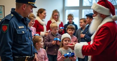 • Niebieski Mikołaj z Jawora rozdaje poduszki policyjne